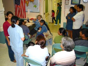 Paid staff included a clinic director, promotoras, and nurse practitioners. We were seriously services-oriented, strong on fundraising, and light on administration. Photo: exam.