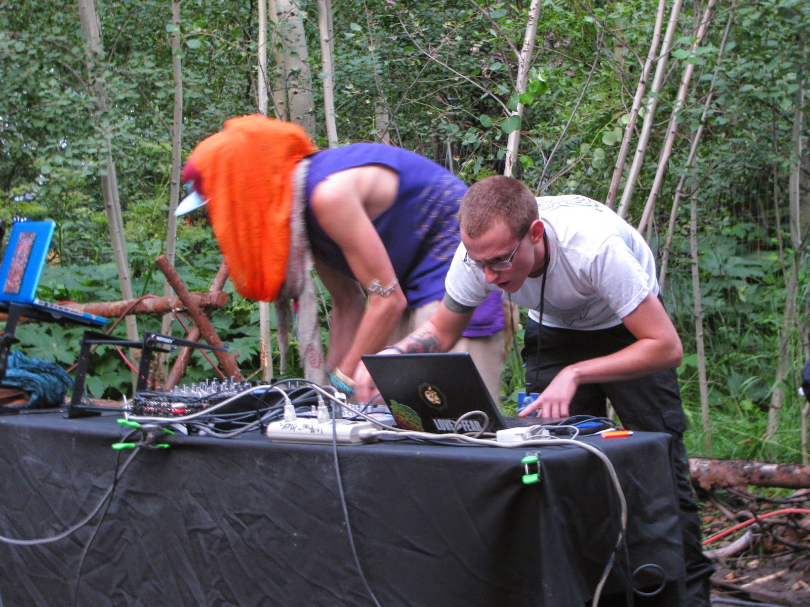 Saturday morning is quieter with the volume and tempo down. People are having coffee, yerba mate, and so on; cooking up some breakfast; wandering around, seeing friends; just a nice social time. Around noon or so, workshops will be starting (see below).