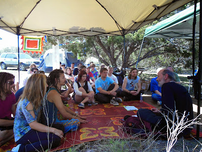 I’ve experienced the transformational potential of the music, the dance, the dancers, the art – of the people who participate in other ways. The magic and the transformational potential is in the whole co-created milieu. A few weeks ago I spent time in a naming ceremony camped at the far edge of a festival. It was a perfect time and place in every way.
