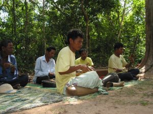 Musicians along a path in Angkor