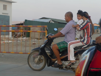 My internet friend, Henning and his partner, Mint picked us up one morning for breakfast at Jars of Clay, one of the aircon places near the Russian Market. It was good to see them. This is the third time we’ve gotten together in Phnom Penh. Henning is a world traveler since he was a child and has vast knowledge of Cambodia and the near and far east. Photo: Random family on a moto. I wonder why MVAs are a major cause of morbidity and mortality in Cambodia…
