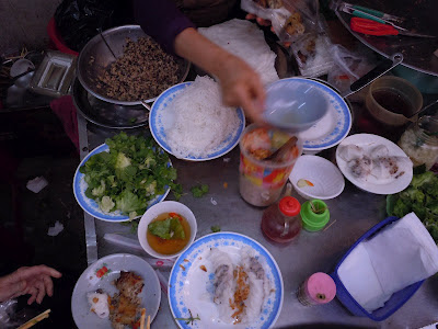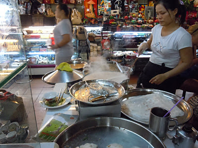 Really, once again, it’s just being here. I don’t think there many of the “sights” we’ve missed over the past seven years. Here’s a big event for us: Today the woman who makes the banh cuon at Binh Thanh market came out from her stand and cuddled Leslie. Saigon travelers will know what an unbelievable thing this is like anyone