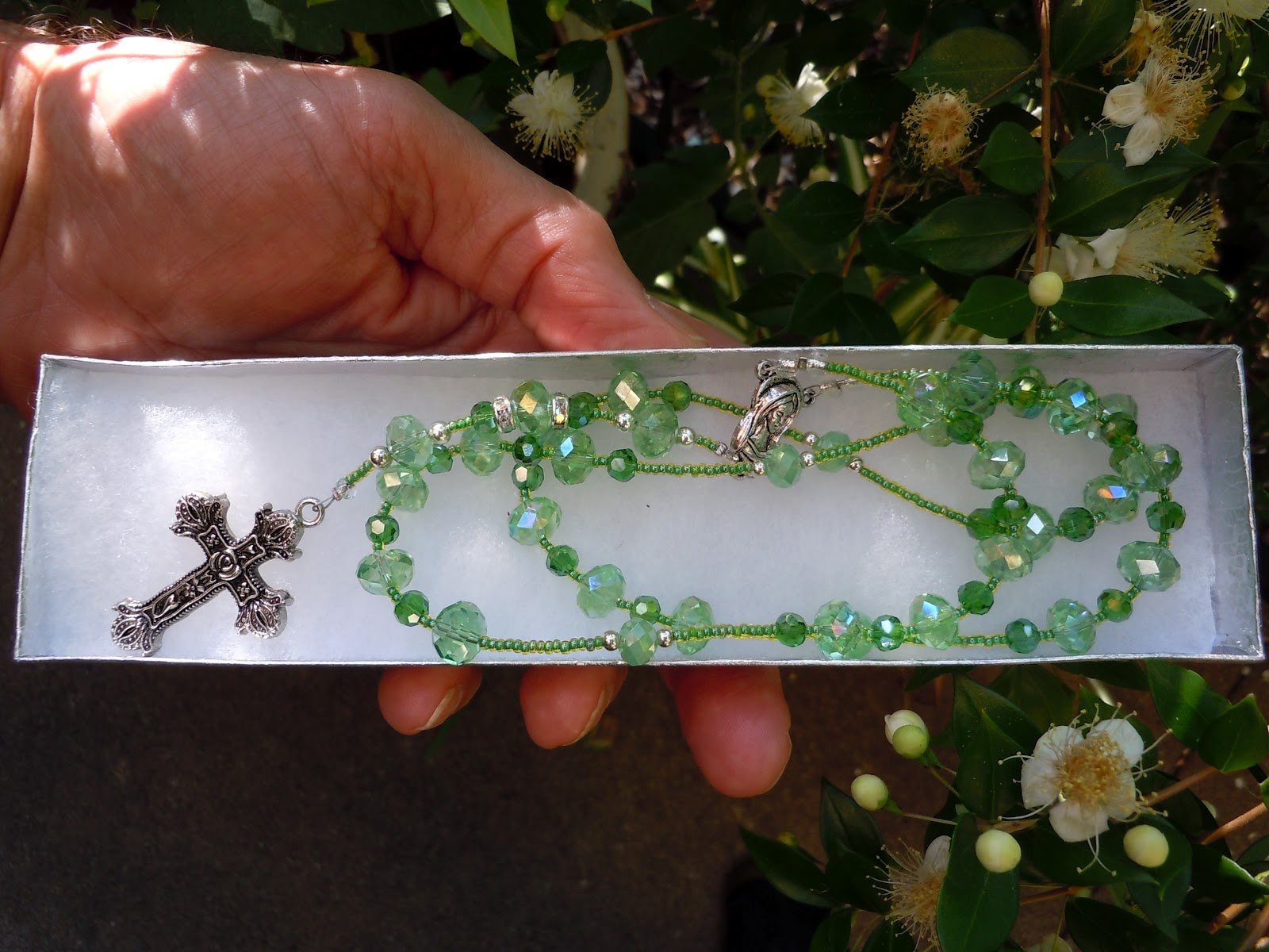 She said she finds herself saying the Rosary she learned in her childhood in an orphanage. I asked her if she would like a rosary now and she said yes. I asked a friend where I could find one, and she had one made and brought it over the next day. Very beautiful. I think I’d like one too.