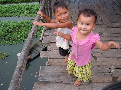 Rolling into Phnom Penh, into the “bus station” and looking out the window to Sokhom waving. There’s Samnang. Far out, we’re here. Load our stuff into the Camry and make our way across town to the family’s new house, the front of which is exactly like the old one – a small cafe where motorcycles drive right in between the bar and the 3-4 tables. Chanmony and Sophear are waiting for us, along with Than, Jeudi, and Uncle Da. Up the steep stairs, into the room where we’ll stay, wash up, have some (really good) dinner. We’re here. Photo: Children I saw on a walk (described later) Phnom Penh photos are here