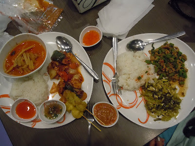 Photo below: Meal at Big C food court – pad se eu, green curry, fried shrimp – US$3 for all