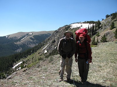 peanut butter sandwich and apple (from home) and cooold milk and coffee for breakfast. I took Highway 104 to Las Vegas and drove for several hours in the dark and in the dawn without seeing any other vehicles. On to Taos, where Jim Z. walked into the coffee shop were we planned to meet about 2 minutes after I arrived. It was a good trip backpacking with Jim, except I fell out on the second day; actually I was pretty much fallen out the first day, but on the second day realized there was no way I could make it up that mountain in any sort of reasonable time. Jim was kind and helpful and in the end, it was a good trip.