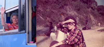 As the weeks come and go and retirement nears, I’m in a suspended state. It all seems unreal, unclear. Yet my eyes, my mind are clearer. Photo: On the right, Leslie waiting for the bus in Nepal, 1978 and on the left, Leslie on the bus in Burma, 2007. Aren’t these the greatest photos!