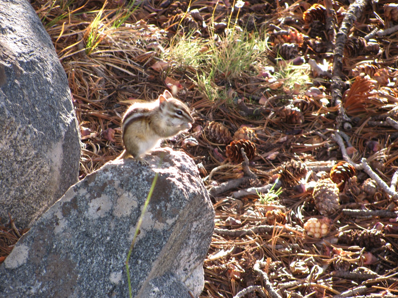 In the morning the tents were covered in (granular) ice >1 inch thick in some places. The plan was to break camp and hike to the lodge for breakfast (mmm, bacon) and then hike out of the mountains. Taking the tent down was soooo slow, with so much ice (inside the tent, too) and my fingers icy cold and then numb and kind of hot feeling – how many times long ago climbing had they felt that way – knocking the ice off and untying lines and then the lion returned and began to scream. I saw it again, about 40 feet away, watching us. It stalked our camp, screaming and hissing 5-10 times as we broke camp. Our theory, zoologists that we are not, was that she had cubs nearby and had basically just had it with us being so close. Who knows.