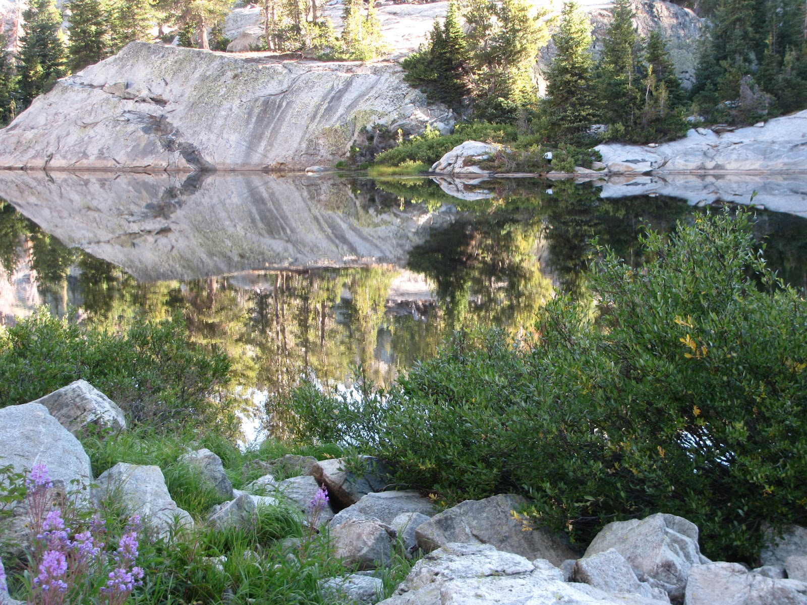 I didn’t get as far or as high as I planned. I got to about 10800, partway up Indian Basin on my third day and was having to stop every 50 yards or so and taking a long time to recover. A man on the trail had said to me, “It’s a wise man who’s willing to change his mind.” As soon as I got down to ~10000 I started feeling better. I camped at Island Lake, on the way out the next day I camped at Seneca Lake, and the last night in the meadow.