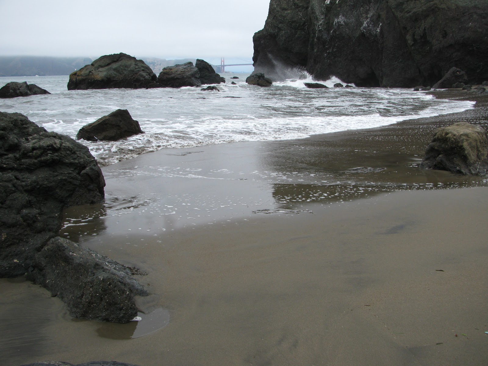 Beach, Golden Gate Bridge in the distance. Get there on 38 bus