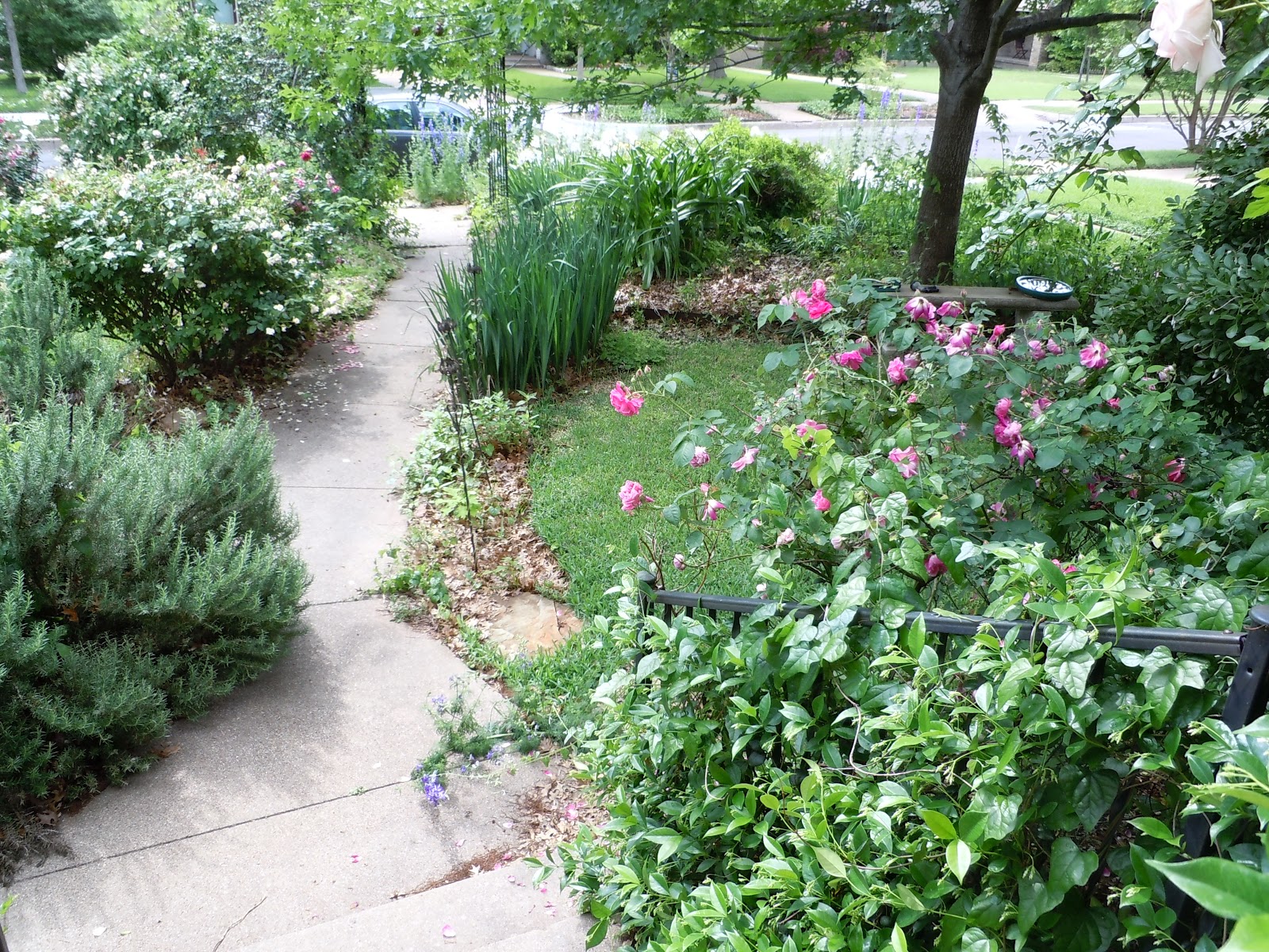 Similar view of front walk in June