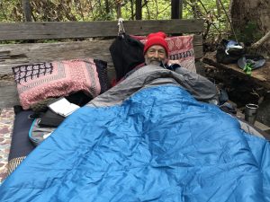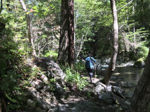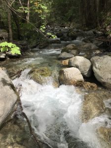 We drove to Coloma to visit Jean’s friend, Lisa, who had a two week artist’s residency at a gallery there. We had dinner with Lisa in Coloma and then drove to a cabin in the Sierra foothills on the American River (as it turns out, ½ mile from where gold was first discovered in 1849). The second day, PG&E cut the power to that part of California because of fire hazard. It was cold and dark and we had a good time. We ate breakfast in the warmest place around – the car, packed up and took off.