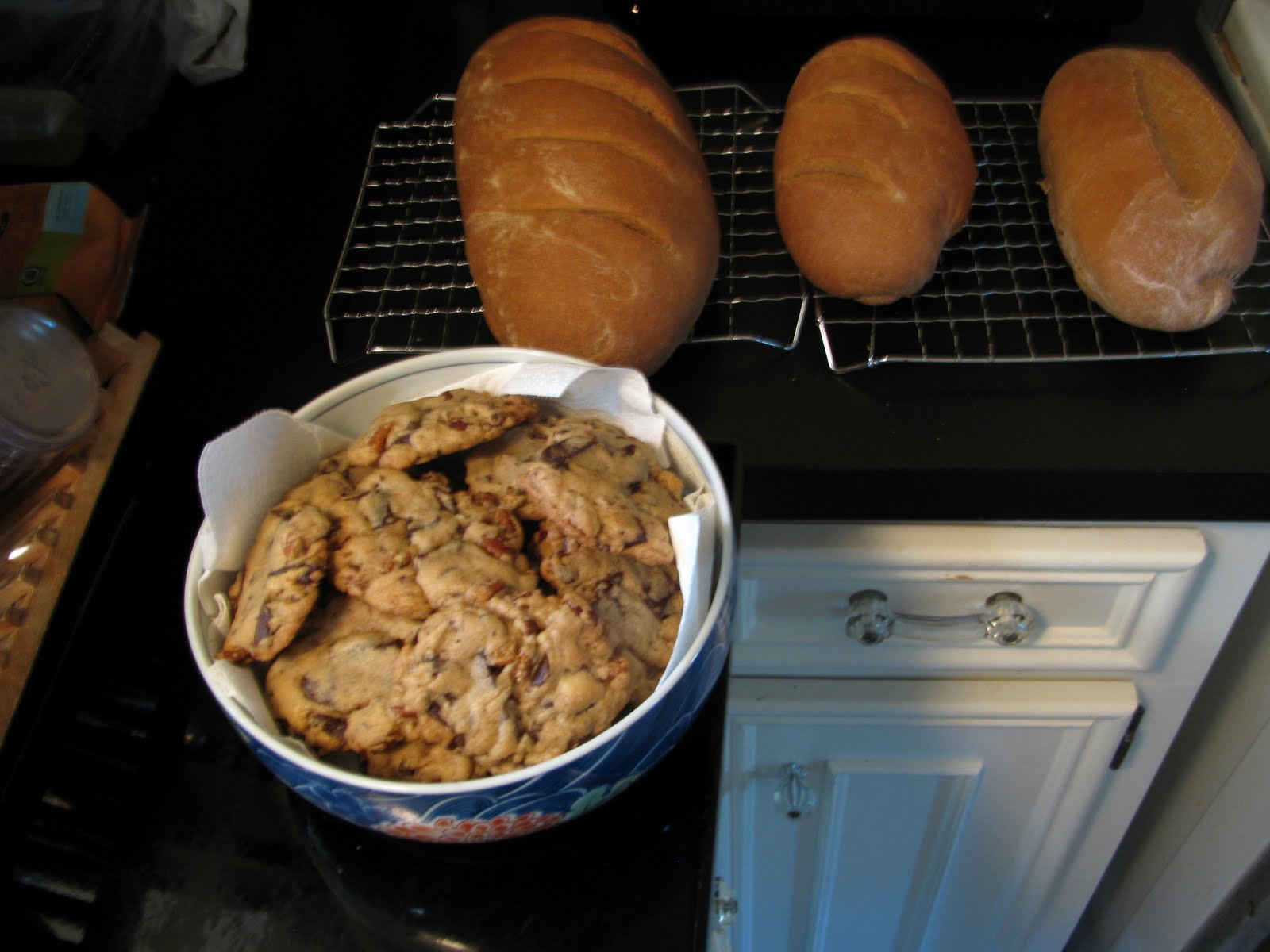 Photo: Chocolate chunk cookies (the best recipe) and whole wheat bread (Tassajara recipe)