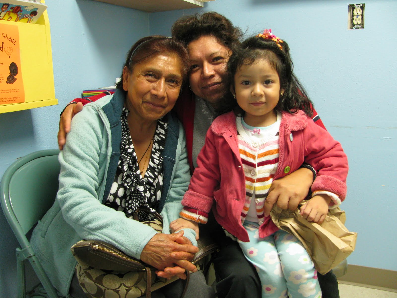 Sometimes I find myself wishing I wasn‘t working. Mostly it’s just laziness, but also the fact that I’ve lost a step. I’m not as adept at keeping track of the multiple problems of multiple patients and the multiple questions and issues that come my way in a busy clinic day (I can keep only about 6-8 windows open). So I’m slower. But then there are realizations that I’m doing a good job for the patients and that I can have some fairly deep clinical insights; there is the pleasure of working with my colleagues; and there are moments like in this photo. What joy to see three generations together like this! What joy to provide care for people who really have their act together, like la abuela in the photo.
