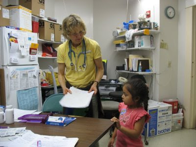 I hadn’t seen her in awhile: a woman came in with her two children. She used to come to the clinic and help, read to children and so on. Last time I saw her, her sister-in-law had beaten her up and she was traumatized a little physically and a lot mentally and spiritually. She moved and now was back 4 or 6 years later and her daughter, 5 or 6 years old then is now 10 or 11 and is like a Mexican Valley Girl, with all her gear and clothes and make-up and what not and still a sweet and innocent smile.